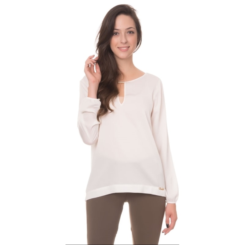 CHOLET - BLUSA BÁSICA DETALHE METAL DECOTE - OFF WHITE