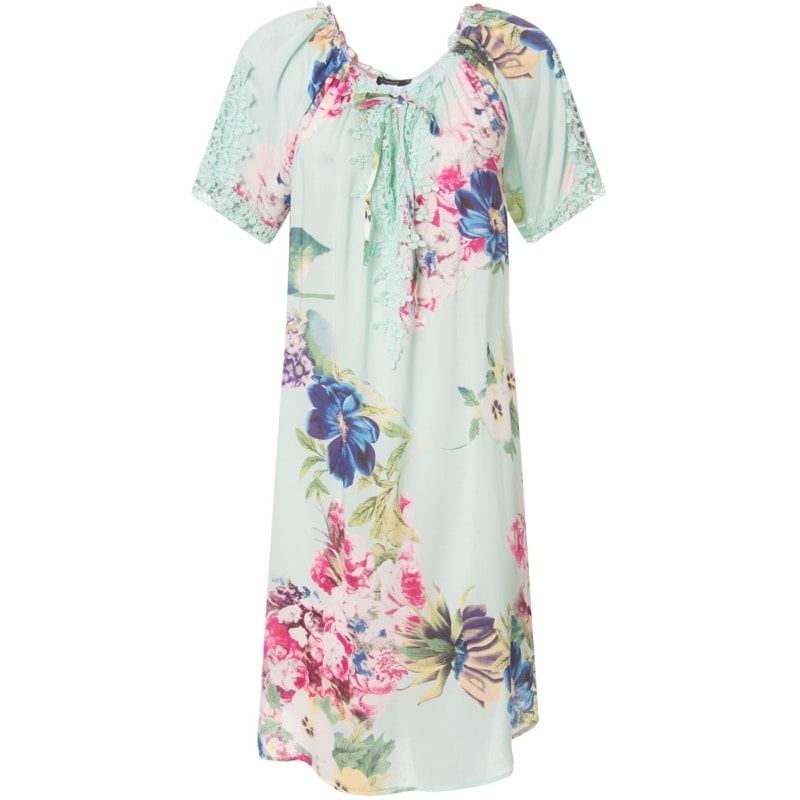 MOÇA BONITA - VESTIDO ESTAMPADO GUIPURE DECOTE E MANGA - VERDE ÁGUA