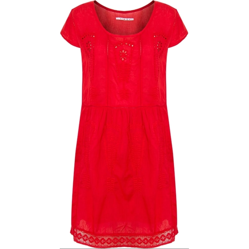 VESTIDO BATA VOIL BARRADO - VERMELHO