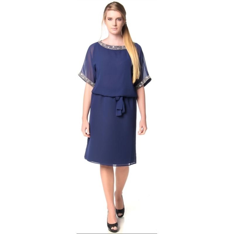 VESTIDO DE FESTA ANTHOLOGIA CURTO BLUSADO DECOTE BORDADO - MARINHO